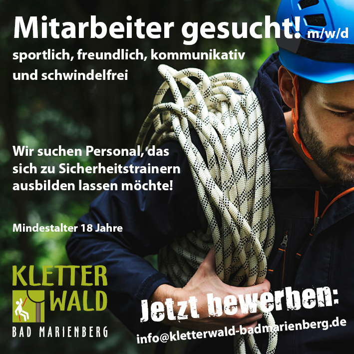 Es wird nur mit KLETTERWALD-eigener Ausrüstung geklettert, andere Systeme sind nicht erlaubt.
